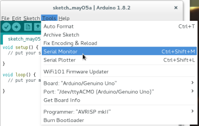 Open the Arduino software. Click on “Tools” > “Serial Monitor” like the following picture :