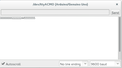 Hit a segment of your board, or create a contact with two pins of your Arduino (use a paper clip on your arduino, for example). Something should appear on the screen like the following picture :